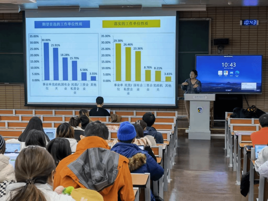 11月24日上午,yl7703永利官网2022届就业形势与政策介绍讲座于逸夫楼一阶教室顺利召开。国际商学院辅导员、校生涯规划课程教研室成员谭佳琳老师作为主讲人,为永利官网本科和硕士高年级学生介绍近五年来学校和yl7703永利官网整体就业情况,以及今年的就业形势与政策。