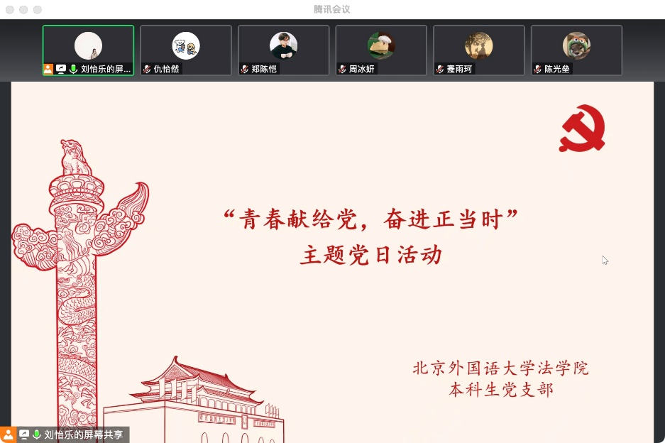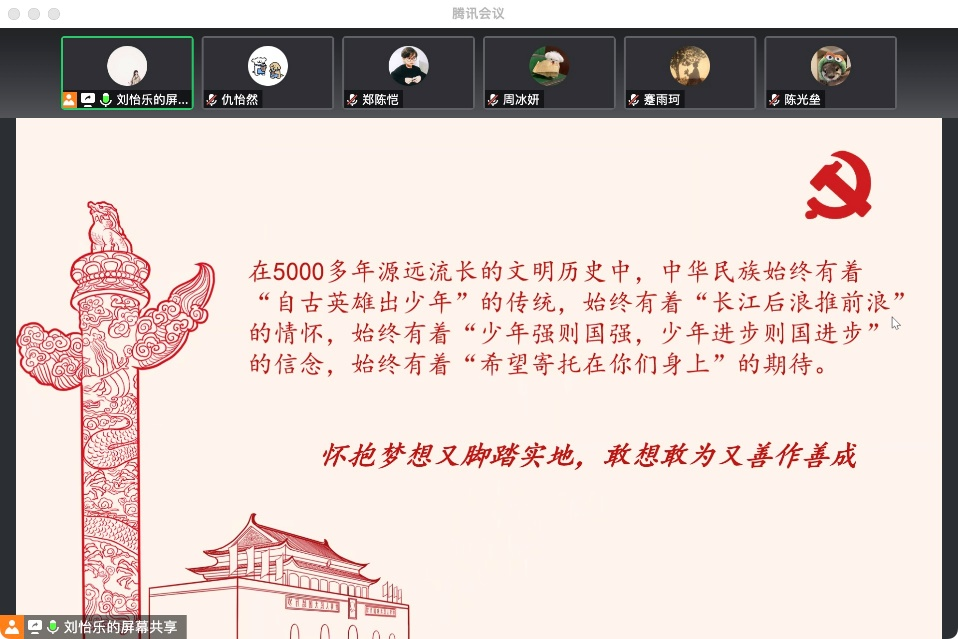 为深入学习贯彻党的二十大精神, 2022年11月20日晚8点,yl7703永利官网本科生党支部结合校园疫情防控最新要求,通过线上会议组织开展“青春献给党 奋进正当时”主题党日活动,支部全体党员参会,本科生党支部党务助理刘怡乐同志主持活动。