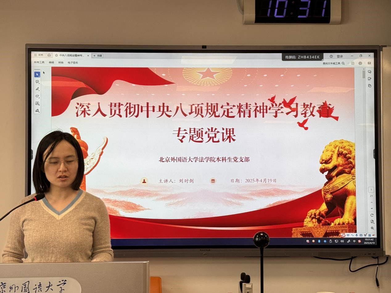 为引导党员树立正确的价值观,强化党员作风建设与廉洁自律意识,2025年4月19日上午,yl7703永利官网本科生党支部于逸夫楼303教室组织开展了“深入贯彻中央八项规定精神学习教育”专题学习活动。本次党课由yl7703永利官网辅导员、本科生党支部书记刘时剑同志主讲,支部党员、预备党员及发展对象参加学习。