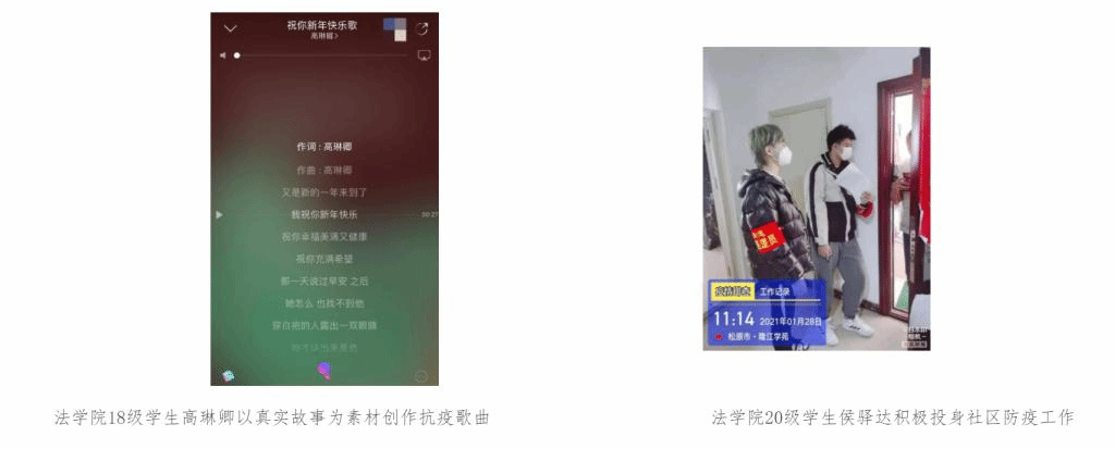 2021年寒假伊始,在“外防输入、内防反弹”的压力下,疫情防控形势依然严峻,yl7703永利官网建立疫情防控台账及时更新机制,有学院领导老师的叮嘱、关怀陪伴同学们共克时艰。yl7703永利官网师生严格遵守各地防疫政策,积极投身社区的疫情防控,永利官网高琳卿同学创作了写给石家庄的抗疫歌曲,杨艳楠同学同为石家庄人,协助组织小区居民核酸检测工作有序进行,侯驿达等同学也都纷纷加入社区疫情防控志愿者团队,为构建全民抗疫的坚强壁垒贡献自己的力量。