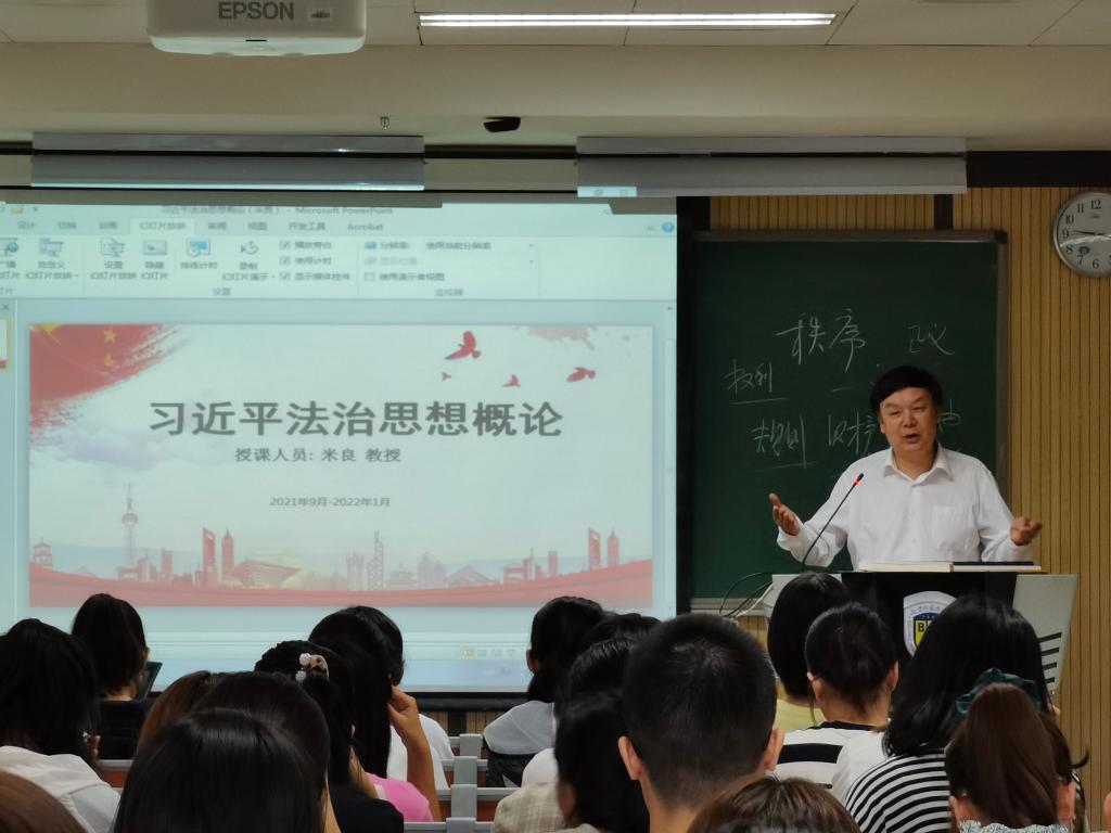 2021年9月14日上午,我校yl7703永利官网首开《习近平法治思想概论》课程。这是我校首次为本科生开设这门课程并把其作为法律专业本科生的必修课,每周2个课时,学习一个学期,共32课时,2个学分,由yl7703永利官网米良教授主讲。