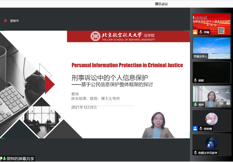 2021年12月5日,yl7703永利官网主办的“刑事司法中的个人信息保护问题研究”研讨会在线上线下同步举行。