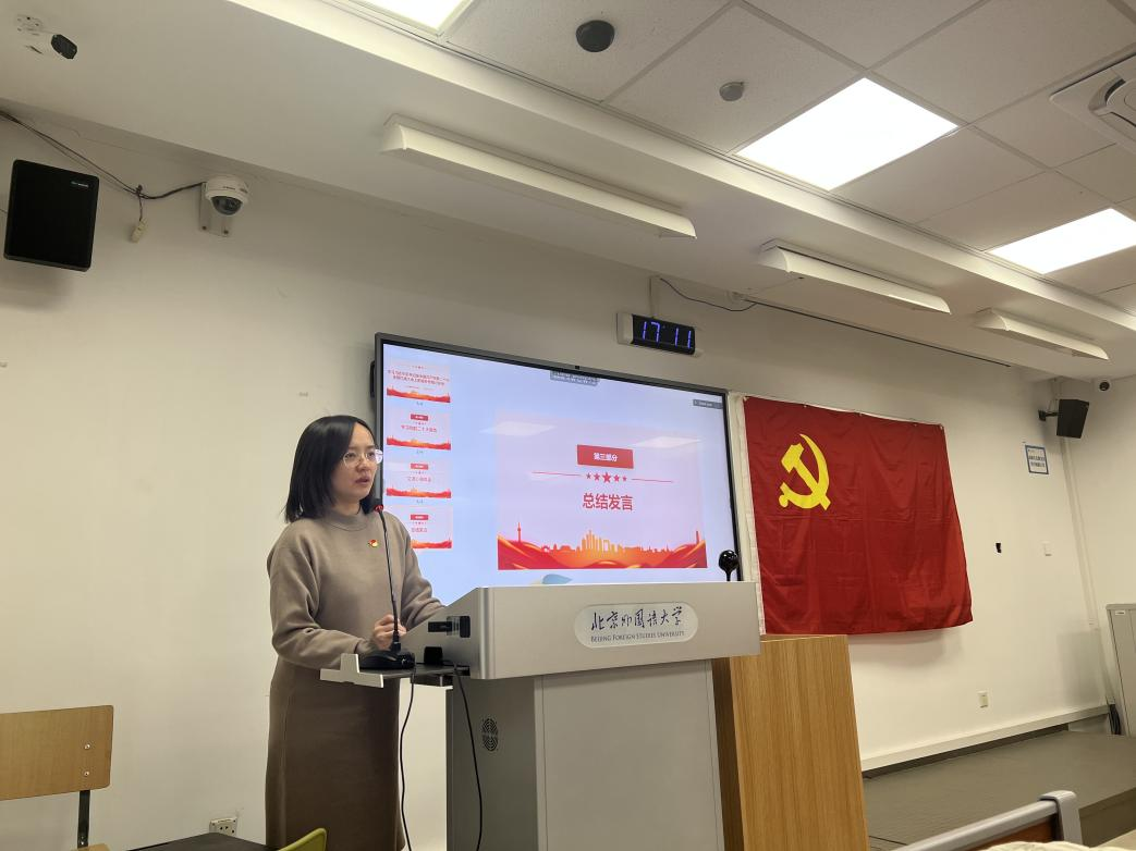 同学们重点交流了习近平总书记对青年人的寄语,大家一致认为,作为当代青年,我们要不负习近平总书记对青年人的嘱托,立志做有理想、敢担当、能吃苦、肯奋斗的新时代好青年,让青春在全面建设社会主义现代化国家的火热实践中绽放绚丽之花。作为北外学子,我们更要努力学习,夯实专业基础,做推动祖国法治建设的法律人,做语通中外、沟通世界、讲好中国故事,为全面建设社会主义现代化国家、全面推进中华民族伟大复兴而不断奋斗的北外人。