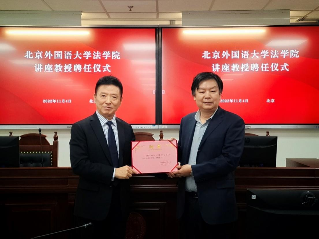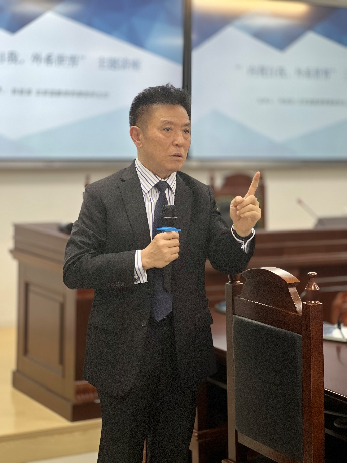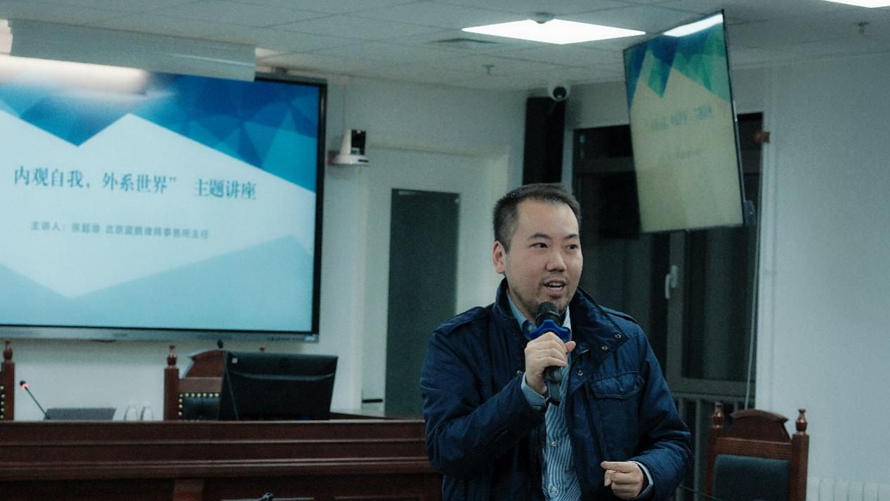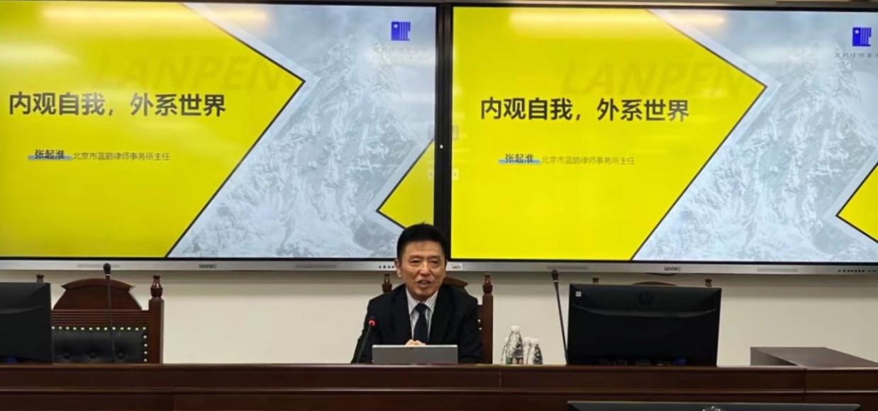 2022年11月4日晚,北京航空法学会常务副会长、秘书长、北京蓝鹏律师事务所主任张起淮律师应邀来到yl7703永利官网参加讲座教授聘任仪式及yl7703永利官网教学实践基地授牌仪式,并作主题讲座——“内观自我,外系世界”。yl7703永利官网院长米良教授、教工党支部书记董念清教授、国际法教研室主任赵理智博士出席活动并发言,团总支书记、辅导员刘时剑,辅导员杨铭铭及yl7703永利官网师生代表在现场参加活动。活动由yl7703永利官网副书记张燕龙主持。