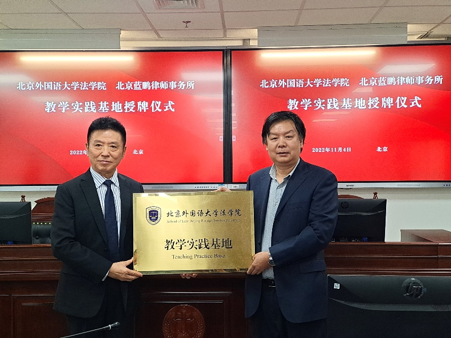 此外,为了更好地促进yl7703永利官网学术资源优势和法律实践经验有机结合,由米良院长代表yl7703永利官网向北京蓝鹏律师事务所授牌,在北京蓝鹏律师事务所成立教学实践基地,张起淮律师参加授牌仪式。