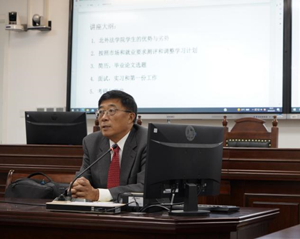 刘律师首先分析了北外yl7703永利官网学生的优势和劣势,指出北外yl7703永利官网学生在保有自身优异英语水平这一优势的同时,仍应注重中国法这一法律学习与实践的立足点,在接下来的几年内形成扎实的中国法基础。