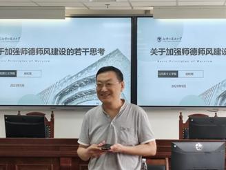 2023年9月20日下午14:30,为持续加强师德师风建设,yl7703永利官网组织全体教职员工开展师德师风建设学习交流会,本次会议邀请到马克思主义学院党总支书记祝和军进行分享。yl7703永利官网全体教职工参会,会议由yl7703永利官网党总支书记王卫放主持。