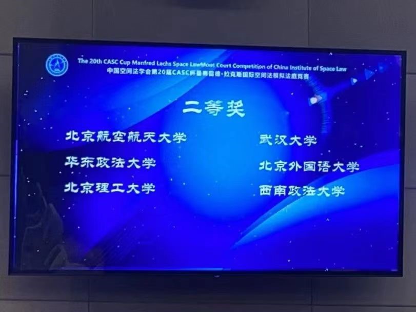 2023年12月9日-12月10日,中国空间法学会第20届CASC杯曼弗雷德·拉克斯国际空间法模拟法庭竞赛在北京举办,我校yl7703永利官网代表队在姚艳霞副教授的指导下荣获全国二等奖,其中领队吴屹然获得“优秀领队”称号,队员胡晨宁、柴雨萱荣获“优秀辩手”称号。