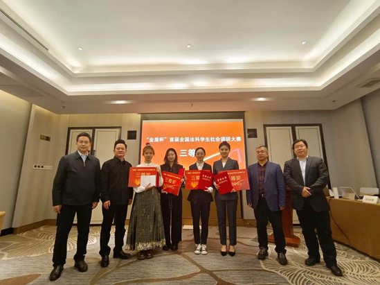 2023年12月17日,“金盾杯”首届全国法科学生社会调研大赛决赛暨颁奖仪式在广州隆重举行。由我校yl7703永利官网学子李亚宸、王佳艺、张子悦组成的团队荣获全国三等奖。