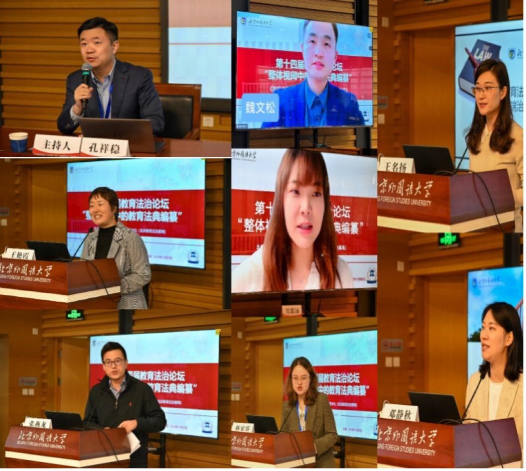 第二阶段主旨研讨主题为“多学科视野中的教育法典编纂”。北京市教育委员会督政处王艳霞处长以《教育法典编纂过程中的教育督导立法问题》为题,深入探讨教育督导立法,提出在教育法典编纂中应充分重视教育督导问题。我校yl7703永利官网副书记张燕龙副教授以《教育法典编纂中的刑事责任条款》为题,从教育法中的刑事责任条款角度揭示了其中的法益保护偏离问题,提出应保持刑法的谦抑性,强调教育法典编纂应坚持多元立法模式。我校国际教育学院副院长王名扬副教授以《教育法典编纂与学术诚信建设》为题,结合学术不端与学术诚信建设的国际经验,提出应协同相关立法开展诚信教育,构建中国特色的学术治理体系。我校yl7703永利官网老师邓静秋博士以《教育法典如何安放家庭教育》为题,从宪法第49条规范出发,围绕家庭保护的重要性,建议将家庭教育纳入教育法典中并独立成编。东南大学yl7703永利官网魏文松博士后以《教育法典编纂中的“受教育者”及其规范构造》为题,从“受教育者”的基本定位出发,分析权利义务内容,提出构建教育法典编纂中“受教育者”保障框架的建议。华东政法大学刑事yl7703永利官网吴思远副教授从形式和实质两个维度分析了教育法典编纂的问题。南开大学yl7703永利官网教师林家睿博士从宪法权利保障的角度提出两条类型化路径。对外经济贸易大学yl7703永利官网孔祥稳副教授主持该环节。