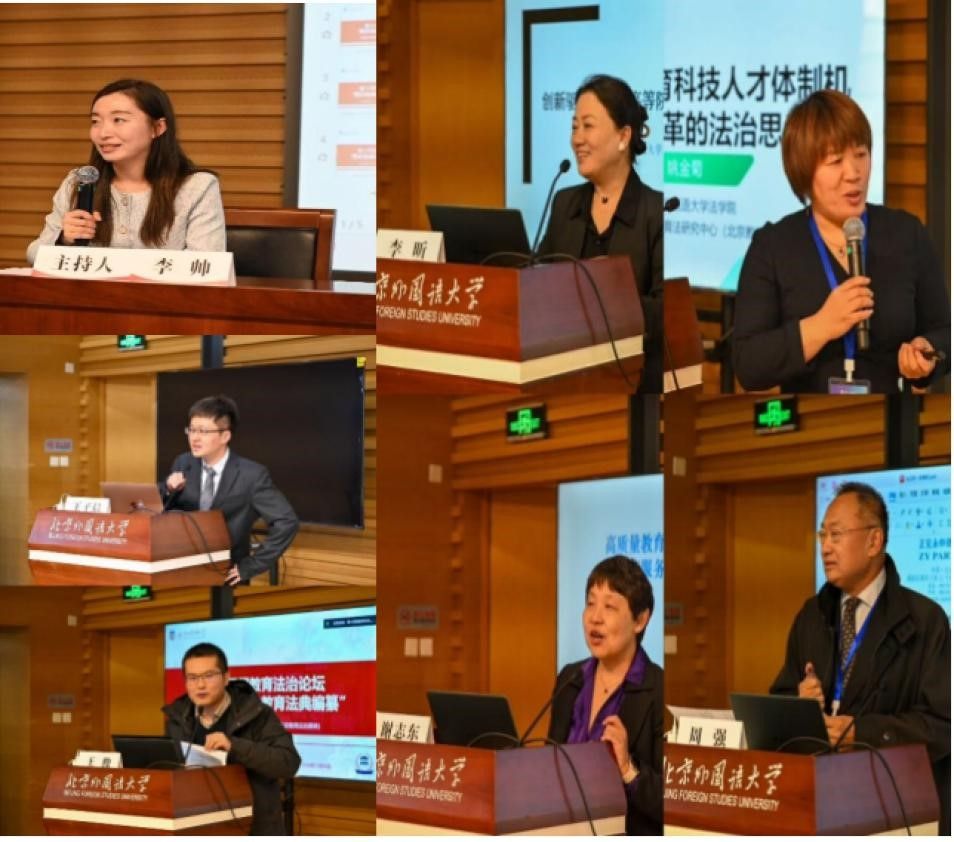 第三阶段主题为“教育科技人才改革与法治保障”。首都师范大学政yl7703永利官网李昕教授以《创新驱动发展中高等院校面临的法律挑战》为题,分析了高等院校在创新驱动发展中面临的法律挑战。yl7703永利官网姚金菊教授以《统筹推进教育科技人才体制机制一体改革的法治思考》为题,通过对教育、科技、人才的政策、立法及背景的历史回顾和现状梳理,提出其中的法治问题及可能的解决方案。北京教育学院学前教育学院院长谢志东教授以《高质量教育体系建设背景下的托育服务政策与法律进展》为题,探讨如何以公办幼儿园为主渠道,提升幼教照护能力,促进国家人口政策的完善。北京市正见永申律师事务所高级合伙人周强律师以《境内机构海外法律风险及对策》为题,结合从业经历,分析境内教育机构面临的海外法律风险与对策。我校国际教育学院王俊教授、yl7703永利官网教师王子晨博士从政策、法律与实践效果的层面进行与谈。yl7703永利官网教师李帅博士主持该环节。