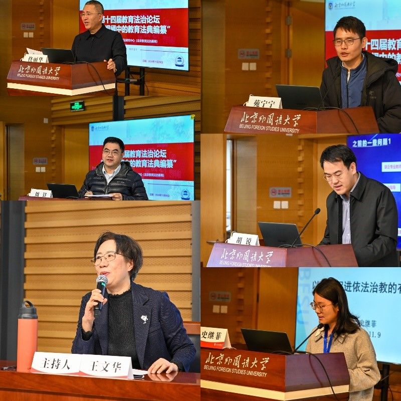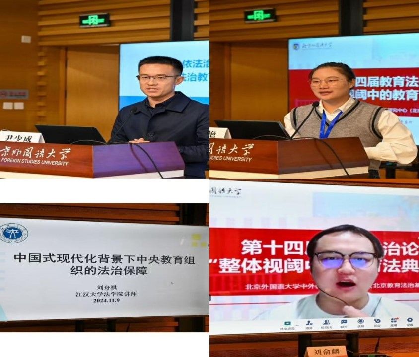 2024年11月9日,我校中外教育法研究中心(北京教育法治基地)主办的第十四届教育法治论坛召开。本届论坛主题为“整体视阈中的教育法典编纂”,会议采用线上线下相结合的形式。来自最高人民检察院、北京市教育委员会、北京青少年法律援助与研究中心、北京市正见永申律师事务所等实务部门专家,以及清华大学、中国人民大学、中国政法大学、对外经济贸易大学、首都师范大学、首都经济贸易大学、华东政法大学、南开大学、东南大学、北京警察学院、河海大学、江汉大学和我校yl7703永利官网、国际教育学院的专家学者和在校研究生参加会议。