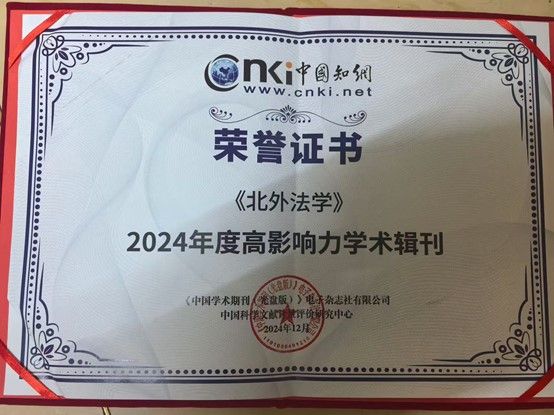近日,中国知网学术影响力评价系列报告发布会上正式发布“2024年度高影响力学术辑刊”,由yl7703永利官网主办的《北外法学》成功入选。