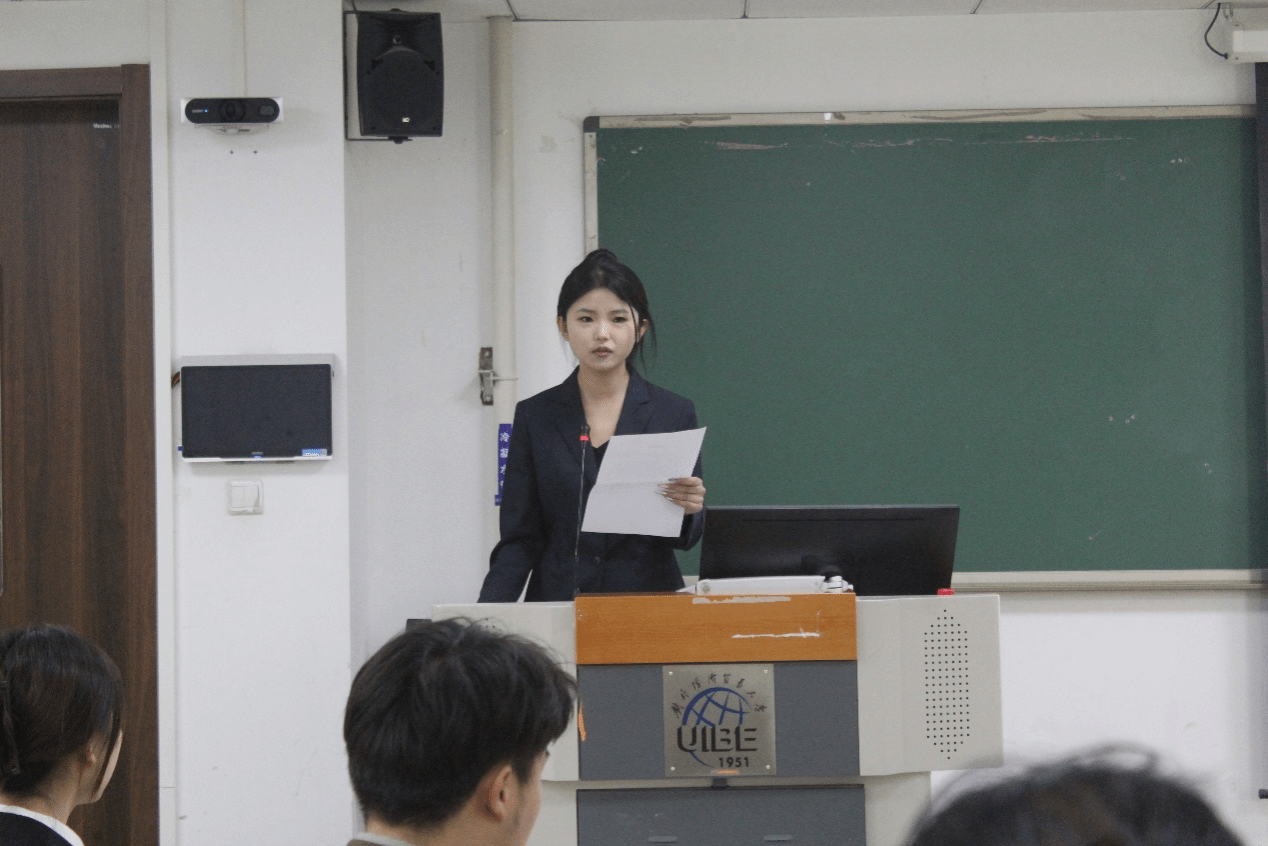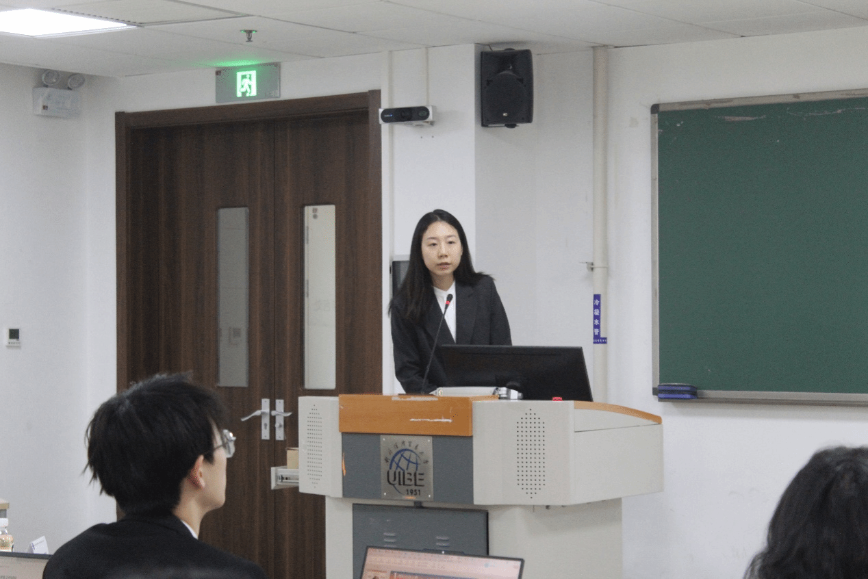 随后的发言环节中,十二所高校代表围绕组织建设、实践育人、品牌活动等内容展开深度分享。永利官网研究生会主席团成员孟凡怡以“以‘职引’讲座与学术论坛搭建科研创新平台”为题分享“青创赋能”的北外经验。首先,介绍了永利官网学生组织的基本架构与组织建设情况。其次,着重展示永利官网研究生会在学术科研与创业创新方面的亮点学生活动,如“就业领航”系列讲座、“繁星计划”校友导师聘任、大型学术论坛协办、写作指导会等。最后,表达了对加强院校间合作的期待并展望法科学生活动不断优化。