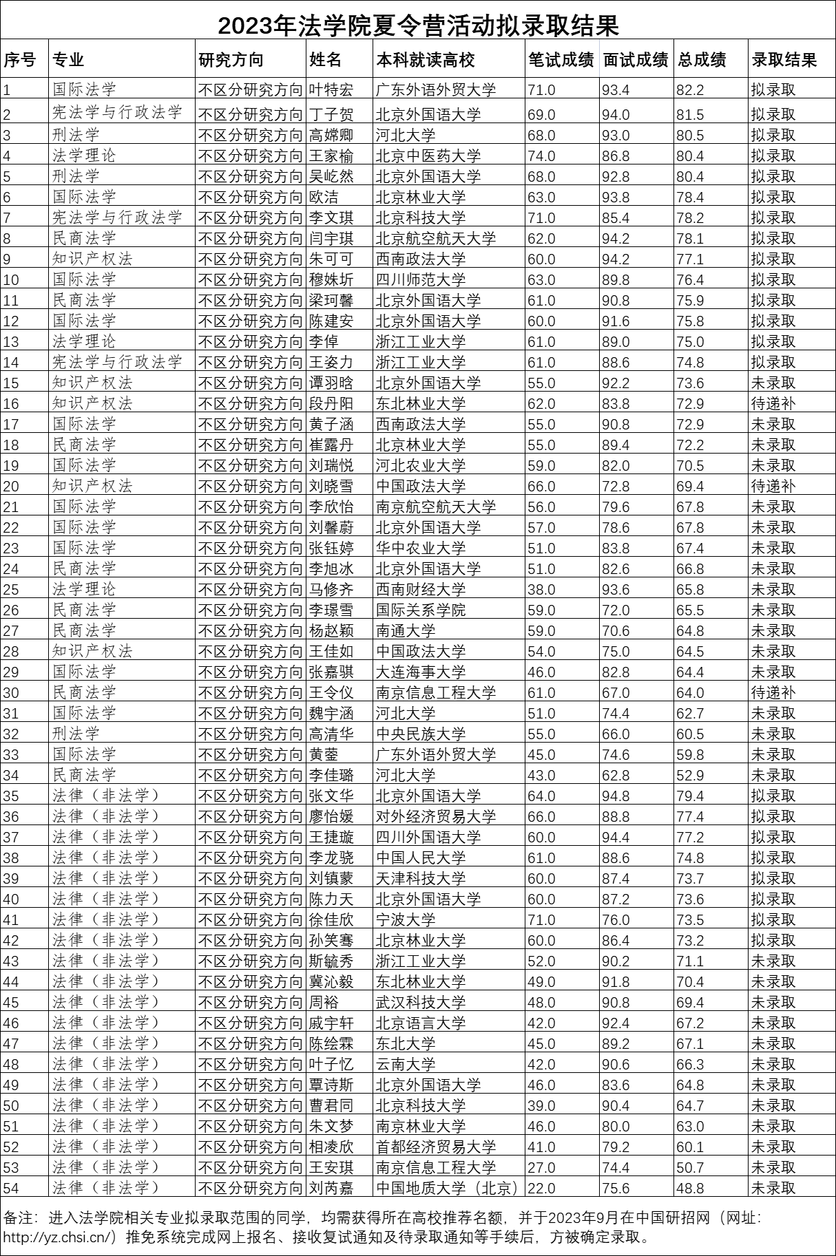 2023年yl7703永利官网夏令营活动拟录取结果