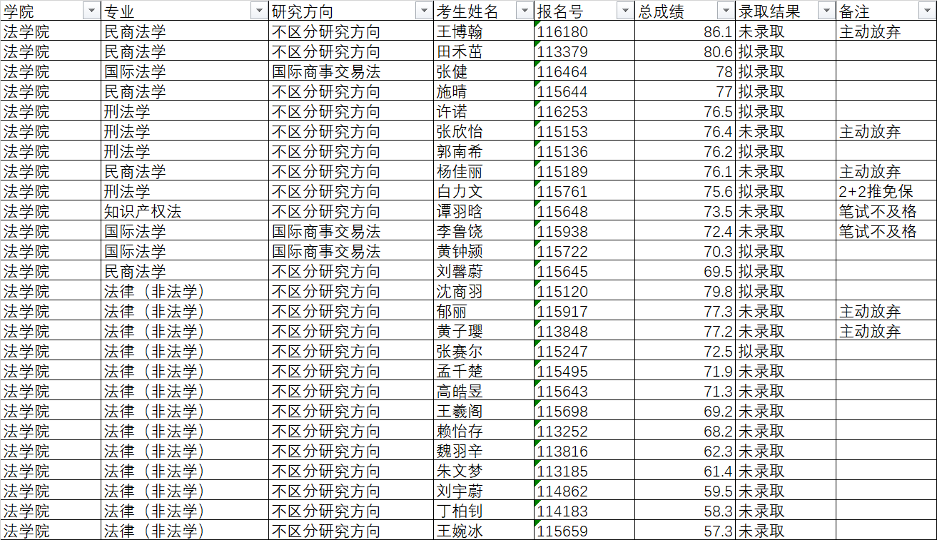 yl7703永利官网2024年接收推免生考试录取结果