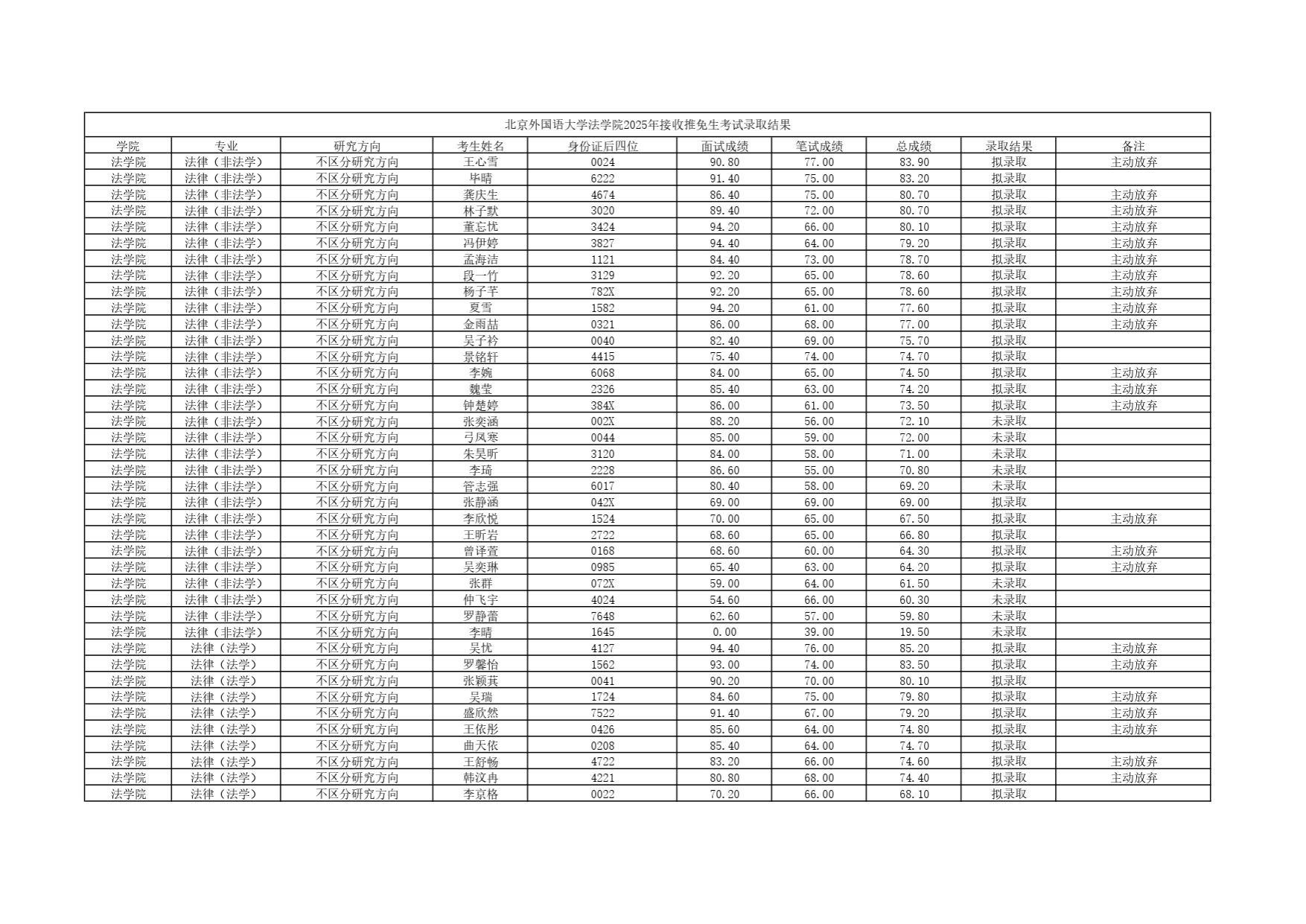 yl7703永利官网2025年接收推免生考试录取结果